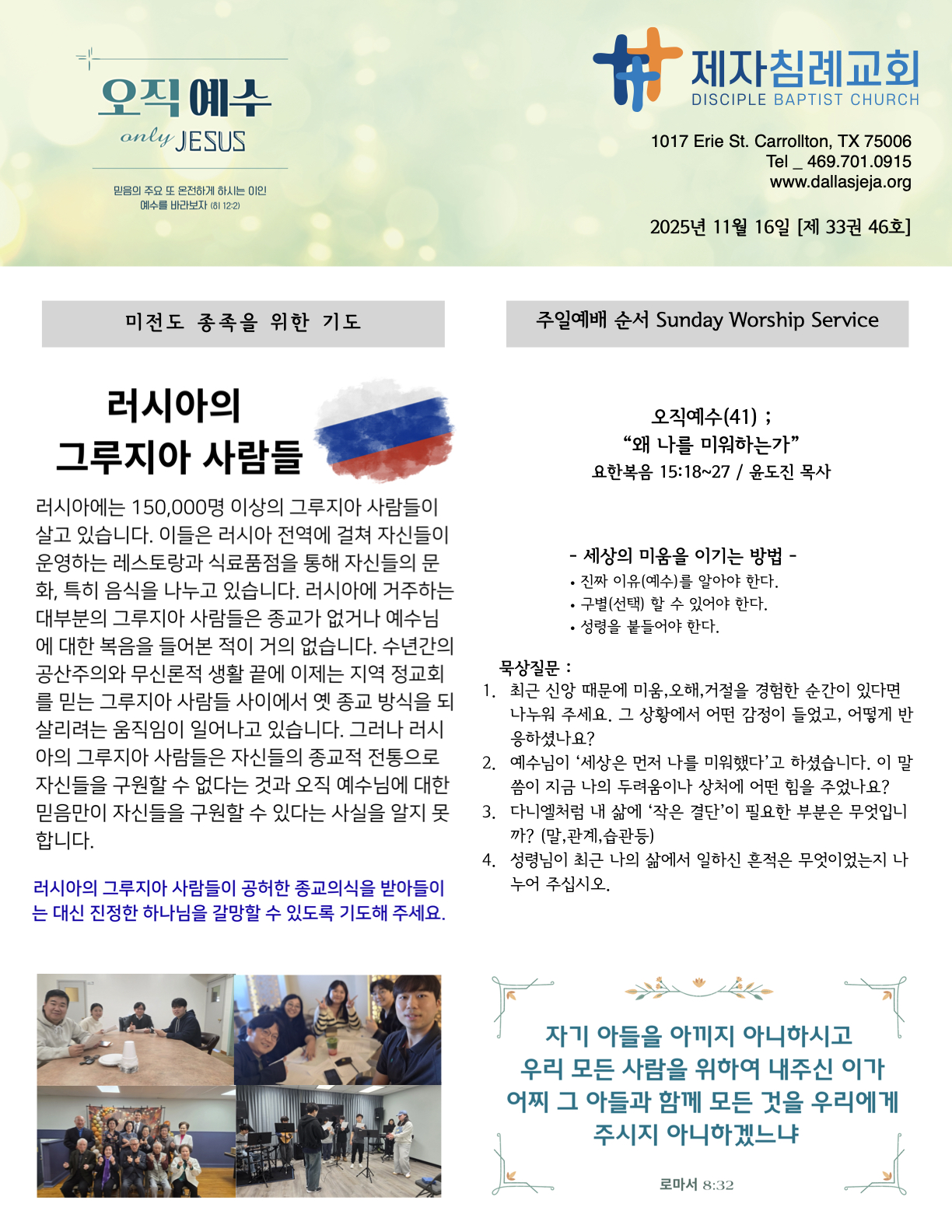 (2025.11.16) 주일 주보 페이지 정보 작성자 달라스제자침례교회 댓글 0건 조회 50회 작성일 25-11-15 17:30 목록 본문 - 이전글(2025.11.23) 주일 주보 25.11.22 다음글(2025.11.09) 주일 주보 25.11.15